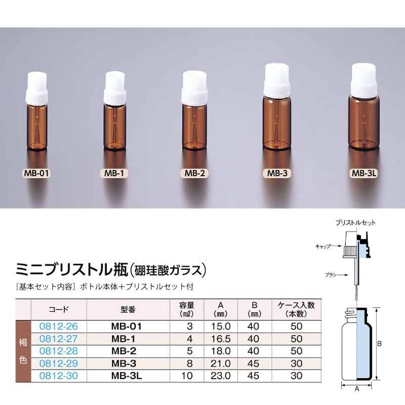 0812-29 ミニブリストル瓶 MB-3褐色 8mL用 (30個入)